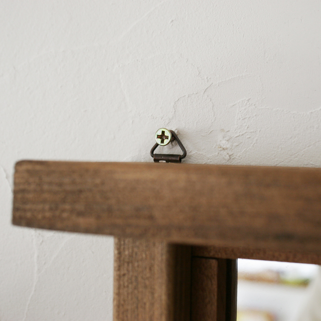 上部に三角フックがついているので壁掛けはもちろん、デザイン的には薄型なので壁に立てかけてもいいように作っていますので壁に穴をあけたくない場合にどうぞ。(※転倒防止のため、画鋲でとめることをおすすめします)