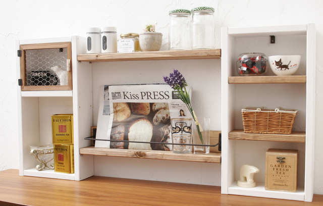 デスクの上やキッチンボードの上に置いて使える収納ラックです。