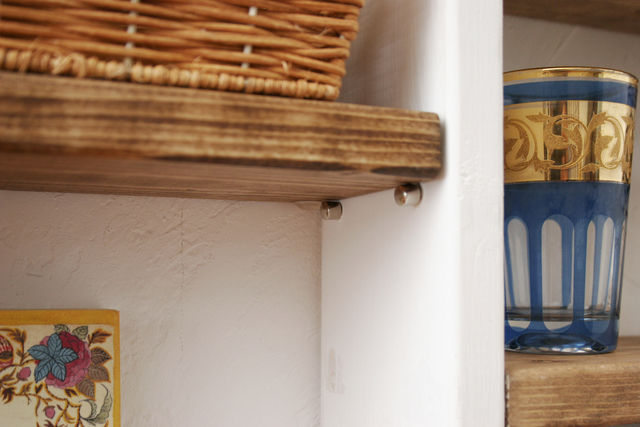 ③平らな棚板と、アイアンバー付きの棚、二つを好きな位置に置きます。