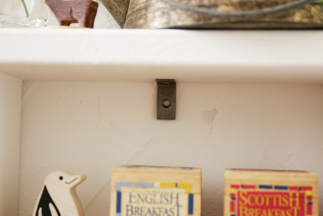 ④真ん中の棚板はダボで支えてるだけなので左右のラックを固定させます。