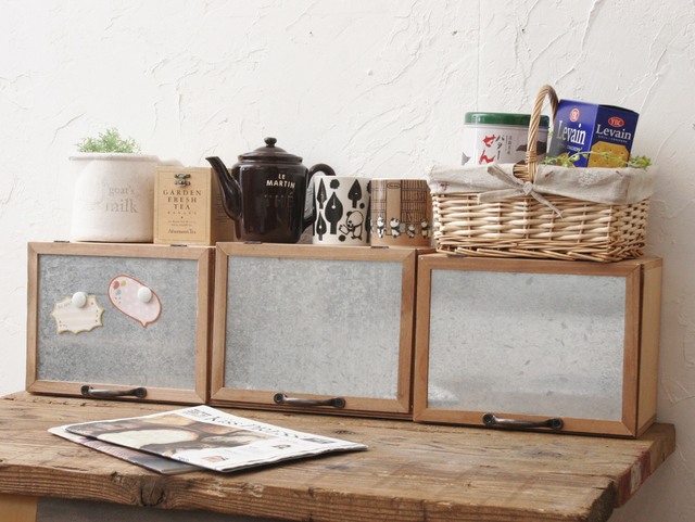 お得な3個セット★小さな箱型収納【ブリキ扉】