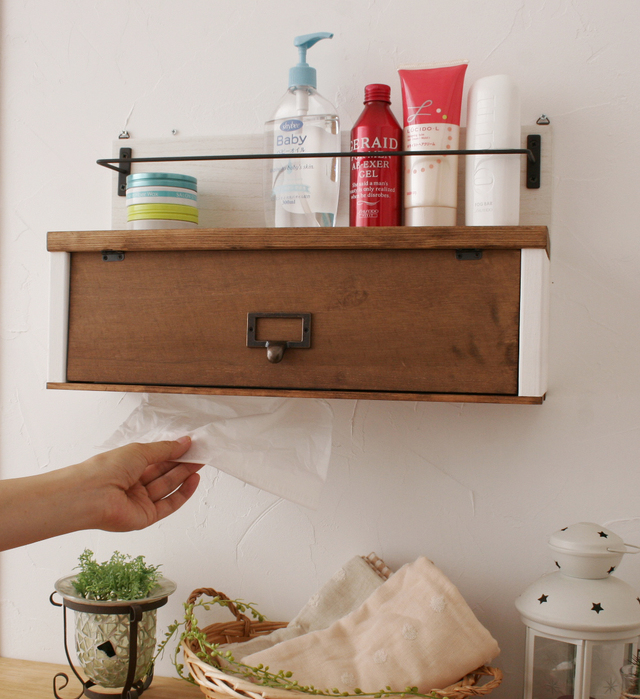 ティッシュ箱が収納できちゃう壁掛けラック【色:ダークブラウン】