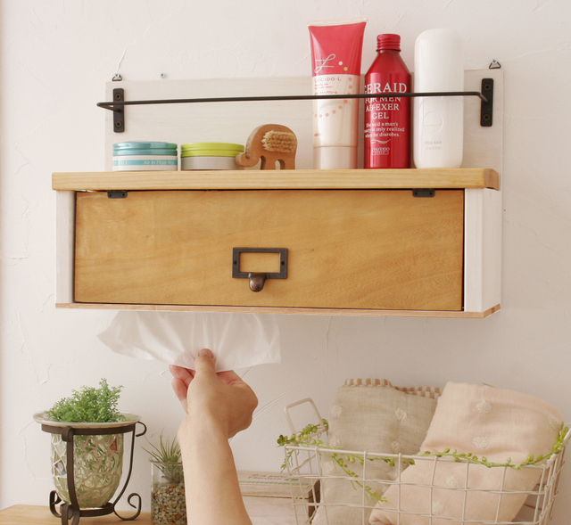 ティッシュ箱が収納できちゃう壁掛けラック【色:ナチュラル】