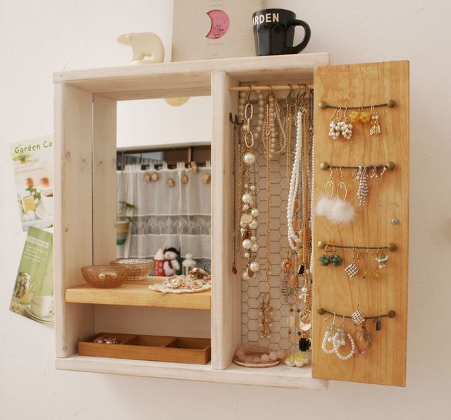 ミラー&扉付き!じゃらじゃら収納できるアクセサリー棚