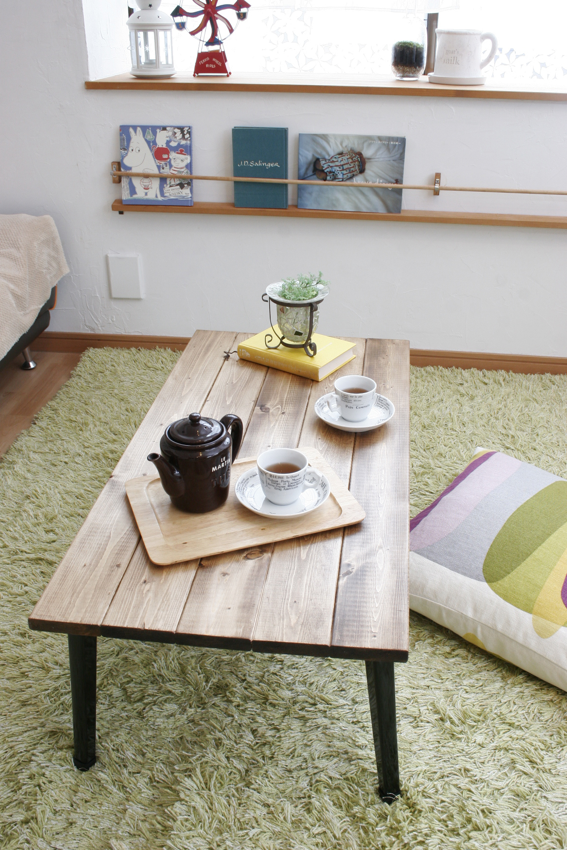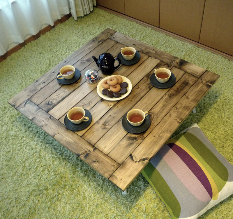 『スクエア型』無垢材で作ったカフェ風の折りたたみテーブル